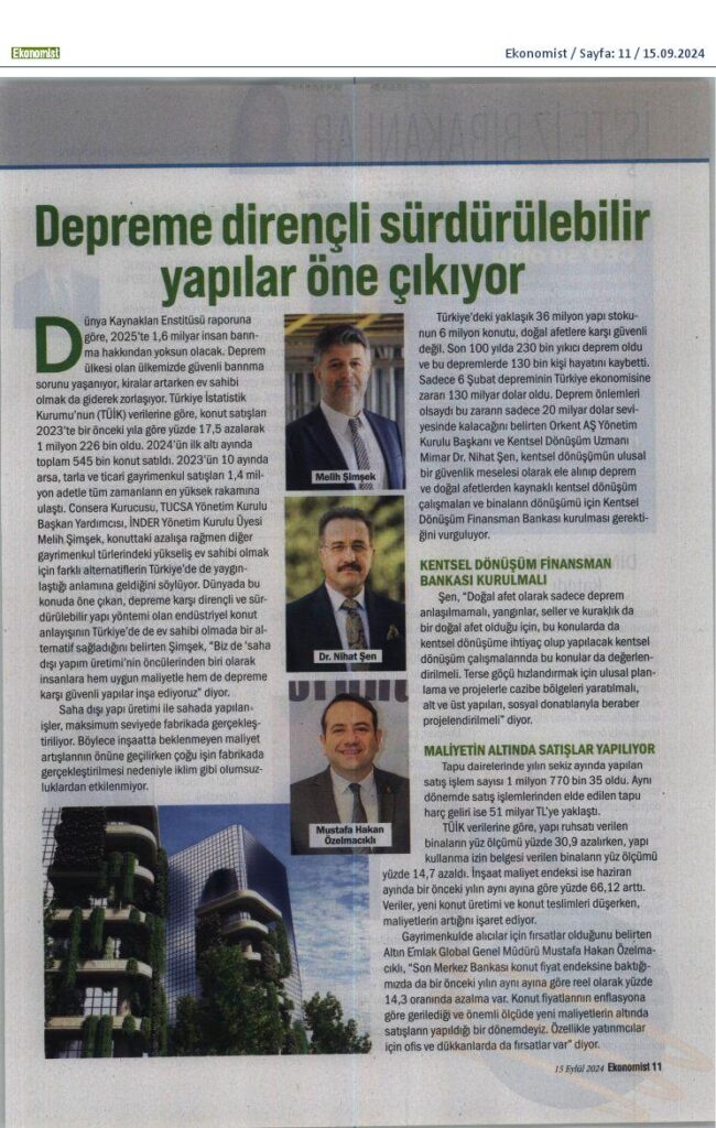 September 15, 2024 Economist 11 According to a World Resources Institute report, 1.6 billion people will lack the right to shelter in 2025. In our country, which is an earthquake country, there is a problem of safe housing, rents are increasing and it is becoming increasingly difficult to own a house.