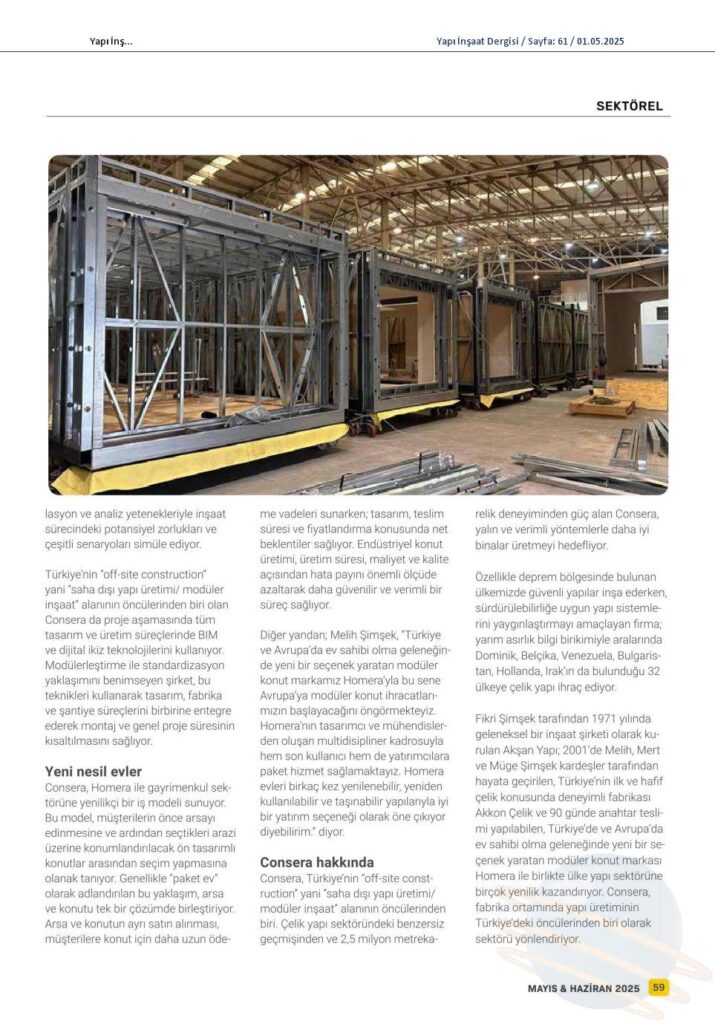 On the other hand, Melih Şimşek said, "We anticipate that our modular housing exports to Europe will start this year with our modular housing brand Homera, which creates a new option in the tradition of home ownership in Turkey and Europe. With Homera's multidisciplinary team of designers and engineers, we provide package services to both end users and investors. I can say that Homera houses stand out as a good investment option with their renewable, reusable and portable structures."