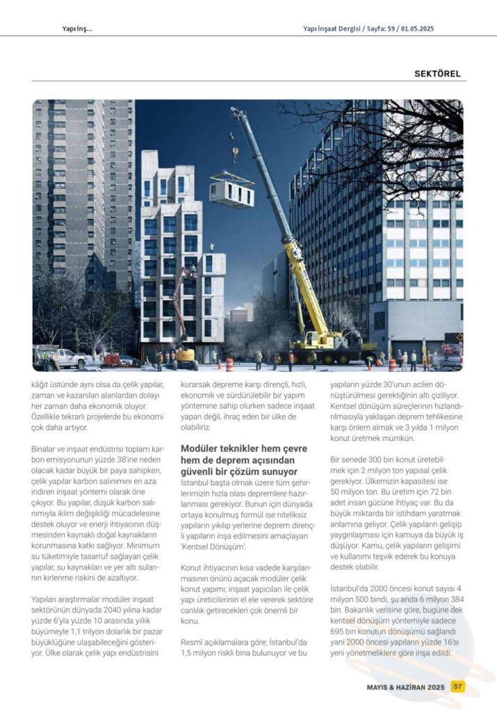 Yapı İnşaat Dergisi – Modüler İnşaat Nedir, Modüler inşaatın Avantajları